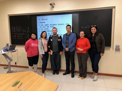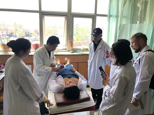 苏培庆汇报了俄罗斯学员中医研修班整体授课情况。培训自4月29日开始,于5月6日正式结束,为期8天,5位俄罗斯学员接受了培训。根据学员需求,教务处制定了具体的研修培训计划,协调中医系、针康系等选派了中医临床经验丰富的教师授课,重点讲授了中医痹症治疗、头痛治疗、针灸推拿技能、养生功法等内容。聘请了山东中医药大学教授、博士生导师滕晶讲授了系统辩证脉学。安排学员在牟平中医医院临床观摩学习了2天。