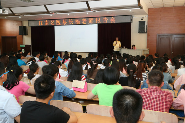 讲座中,蔡老师以自己的研究成果为蓝本,结合临床治疗疑难病症的实例,详细讲解了伤寒六经的本质以及六经辨证的内涵。蔡老师认为“病跟经走,方跟病走,经病同行,六经大道找病”。他主张,在诊断和治疗疾病时,应该坚持六经辨证,以“六经辨证”为纲,以六经统摄百病,以“伤寒论经方”为基础和依据。面对热情的听众,蔡老师系统诠释了热病的常见症状和治疗办法,创新性提出了“骨空”、“人体本能”、“表证常携带”、“足太阳膀胱经大论”、“伤寒化热生死论”等论点。蔡老师知识渊博,学验俱丰,严谨治学,他的讲座立意深刻,观点独到,信息丰富,广大师生反响热烈。