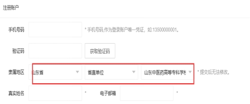 根据《山东省中医药特色疗法征集工作方案(2023版)》(附件),开展2023年度中医药特色疗法挖掘整理工作。申报教师对征集项目进行实地考察,负责项目申报资料的真实性和完整性,确认信息后,登录山东省中医药特色疗法挖掘整理管理系统(http://tslf.sdutcm.edu.cn/)进行注册(隶属地区如下图),于8月22日10:00前完成网络填报工作,逾期不予受理。教务处将组织专家评审,择优推荐。