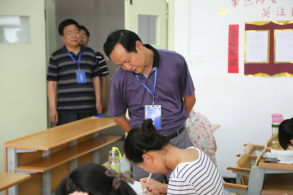 在烟台校区,7月16日和20日,学校领导金鲁明书记、张立祥校长、战文翔副校长和史梅副校长等分别巡视了考场和阅卷现场。