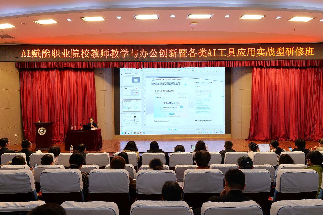 为推动“AI+职业教育”结合,提升教师数字素养,5月17日至18日在仁和楼学术报告厅,学校成功举办“AI赋能职业院校教师教学与办公创新暨各类AI工具应用实战型研修班”,烟台校区400余名教师现场参加,莱阳校区教师同步线上学习。